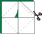 For a diamond shaped bead, cut a square of bead fabric and a square of background fabric in your bead size. Cut the background fabric into 4 identical squares.